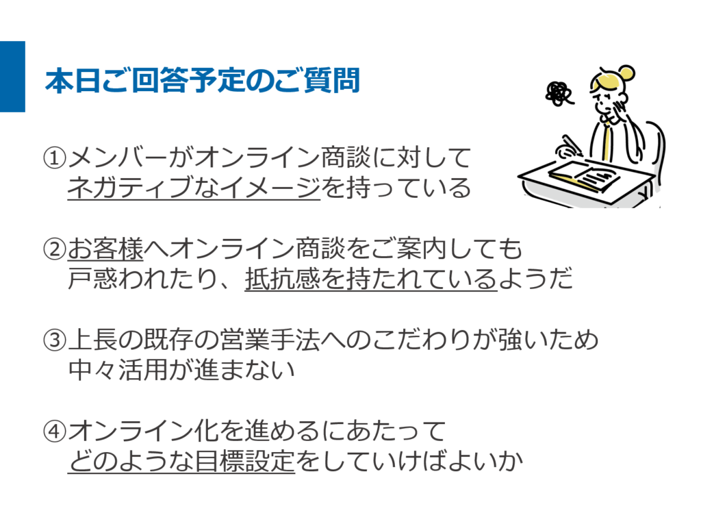 ・オンライン化にあたり社内メンバーの理解を得たい