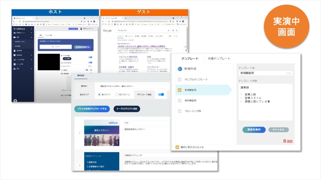 本セミナーでは、bellFaceの接続案内から商談中に利用する機能の操作方法までを、