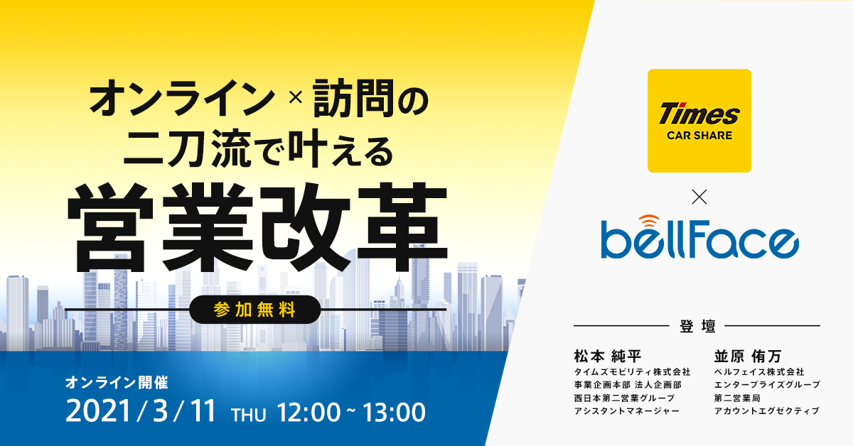 本セミナーでは、オンライン営業システムを提供するベルフェイス株式会社とモビリティ事業を営むタイムズモビリティ株式会社がクロストーク。