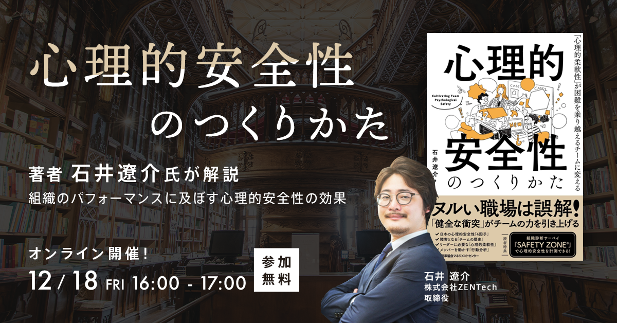 本セミナーでは「心理的安全性のつくりかた」の著者である石井 遼介(いしい りょうすけ)氏をお招きし、これからの営業マネジメントでの心理的安全性について解説します。