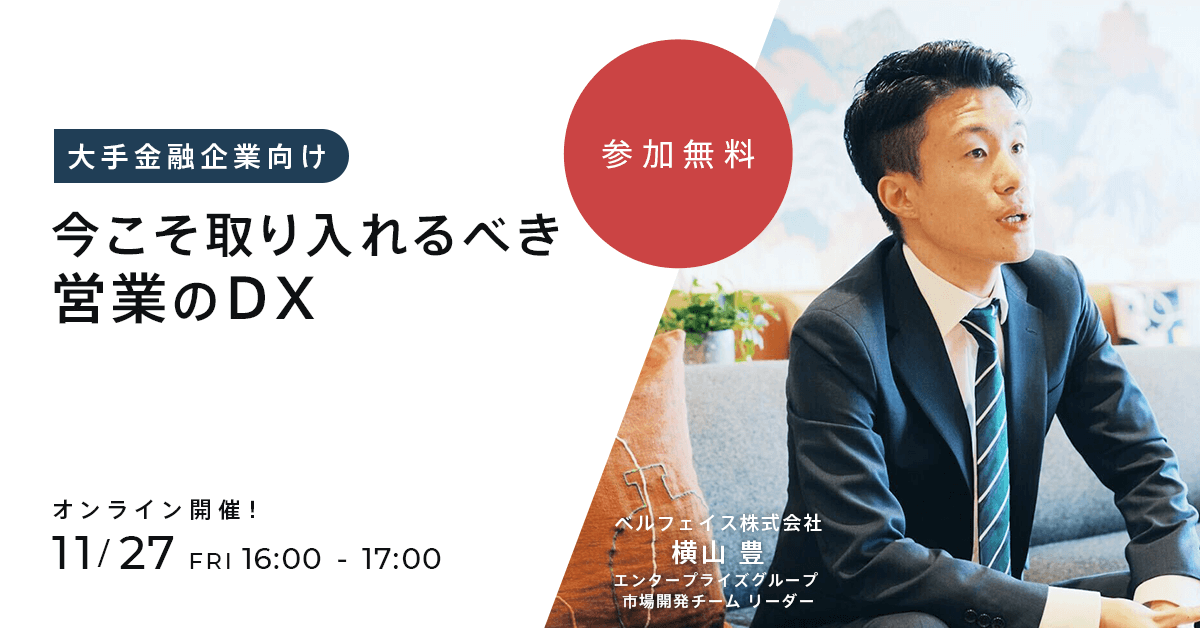 今回は、大手金融企業様向けに「DX(デジタルトランスフォーメーション)」の基礎や取り入れ方についてご紹介いたします。With/Afterコロナ時代を乗り超えるためには、営業組織にもDXが不可欠です。目まぐるしく変わる世の中に適した営業体制を構築するためにも、ぜひご参加ください。