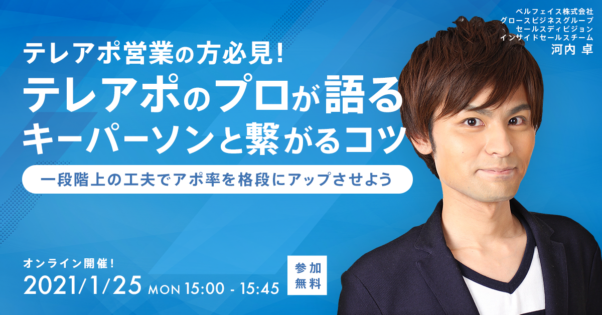 今回はインサイドセールスチーム河内が、アポイント成立までのコツを詳しく伝授致します!キーパーソンと繋がるコツは、法人営業BtoBで全般的に効果的です。このウェビナーでキーパーソンと繋がるコツをしっかり習得し、今日から業務に活かしましょう!