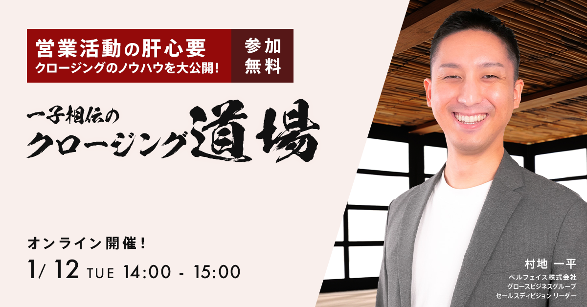 本セミナーでは、ベルフェイス社内で開催されている「クロージング道場」と題した勉強会の内容を元に、幾多もの商談を経験してきた講師が、クロージングの持つ役割と、練り上げられたトークをお届けします。