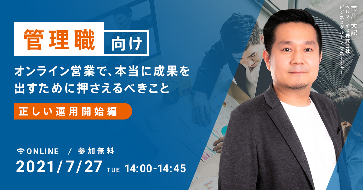 このセミナーでは、その入口となる運用開始において重要な勘所をお話します。オンライン営業をこれから始める、オンライン営業で成果が出ていない、さらなる改善/定着を図りたいといったニーズを持つ組織の方におすすめです。